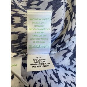 Lilly Pulitzer navy blue & white peacock button front top, size Large
