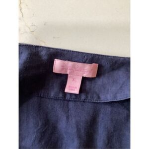 Lilly Pulitzer Amelia Island Top Sz XL 100% Linen Embroidered Blue Pink