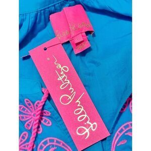 The Lilly Pulitzer Women's V Neck Analyn Tunic Dress in a beautiful turquoise blue and pink color scheme is here! This size large dress is made from a lightweight material that will keep you feeling cool and comfortable even on the hottest days. Plus, it has tags attached, so you know you're getting a brand-new, high-quality dress. Whether you're dressing up for a special occasion or simply running errands, this dress is sure to impress.