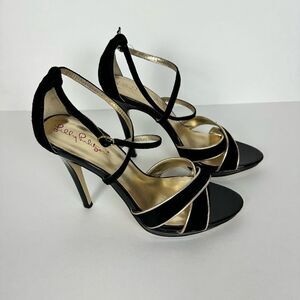 Lilly Pulitzer Bella Black Gold Strappy Heel size 7.5M