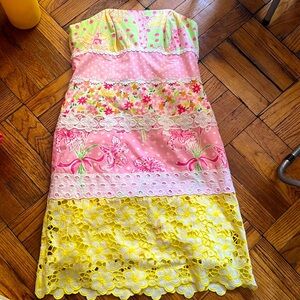 Lilly Pulitzer Buy Local Patch Print Strapless Dress 6