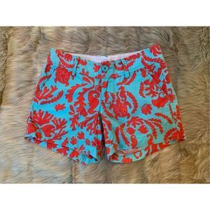 Lilly Pulitzer Callahan Shorts Don't Be Shellfish Aqua Coral Turtle Fish Size 00
