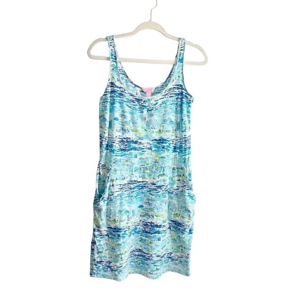 Lilly Pulitzer Dress Size XS Blue Sleeveless High Tide Toile Beach Pattern