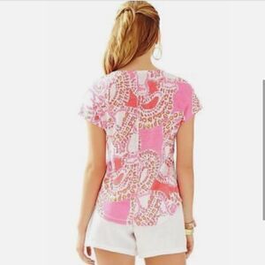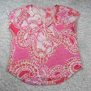 Lilly Pulitzer Duval Notch Neckline Linen Top Pink