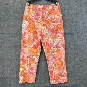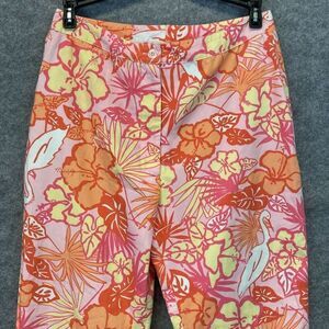 Lilly Pulitzer Floral Print Pants Size 4 Tropical Hibiscus Flamingo Capri Cotton