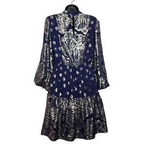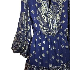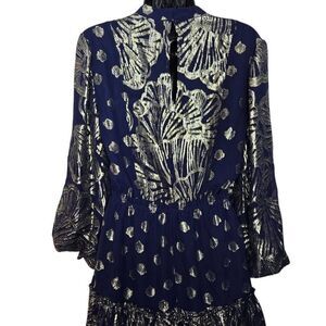 Lilly Pulitzer Joelle Silk Dress Navy Gold Metallic Clip Fit & Flare Size 2
