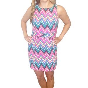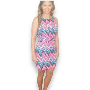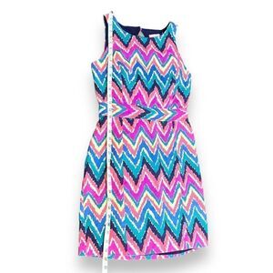 Lilly Pulitzer Kirkland Hearts A Flutter Chevron Keyhole Back Colorful Dress Women’s Size 4