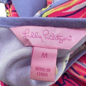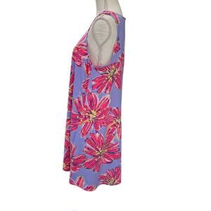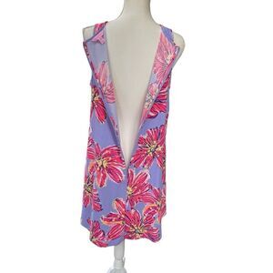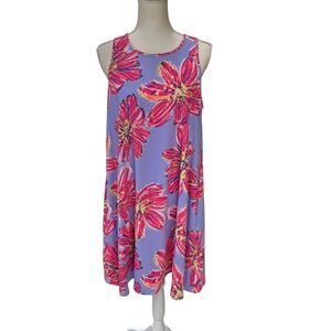 This Lilly Pulitzer dress features a vibrant floral design on a lightweight fabric. Its sleeveless cut offers comfort and style, suitable for warm weather.