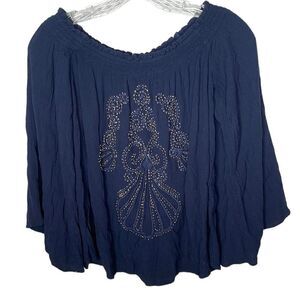 Lilly Pulitzer Nita Navy Off The Shoulder Embellished Top. Size Small.
