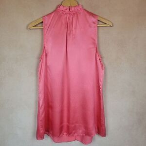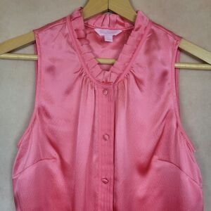 Lilly Pulitzer Pink Silk Sleeveless Button Down Blouse Ruffled Collar size 8