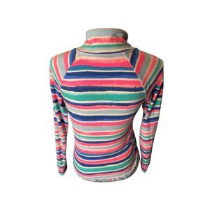 The Lilly Pulitzer Popover Jacket in Sandy Shell Stripe is a unique and stylish addition to any woman's wardrobe. Made from a comfortable cotton blend outer shell with a cotton lining, this pullover jacket features a colorful striped pattern that adds a fun and vibrant touch to any outfit. The size XXS ensures a perfect fit for those looking for a more tailored silhouette. The Lilly Pulitzer brand ensures quality and style, making this jacket a rare and sought-after piece for fashion-forward individuals.