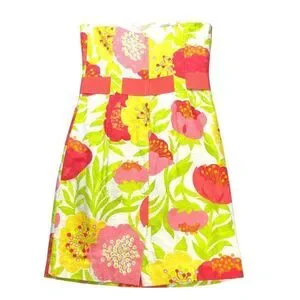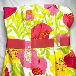 Lilly Pulitzer Strapless Floral Jacquard Dress – Pink Yellow Green – Size 6