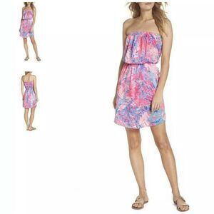 Lilly Pulitzer WINDSOR STRAPLESS DRESS Light Paschs AQUADESIAC Pink Blue Size XS