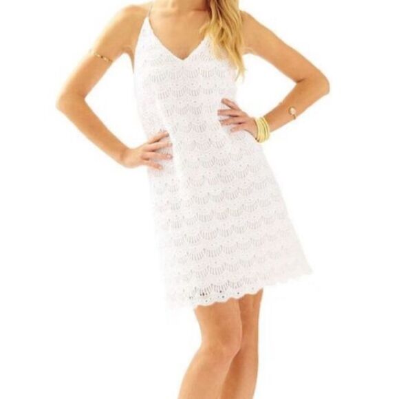 Lilly Pulitzer White Natalie Resort Scalloped Lace Strappy Tank Dress Lined Size