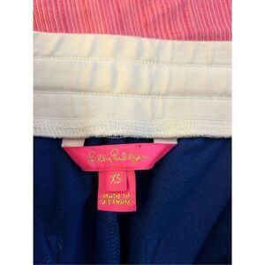 Lilly Pulitzer navy shorts xs. elastic waist, 14" waist, 3.5" inseam. 9" rise. pockets. good used condition.