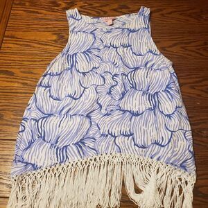 Lilly Pulitzer sonya fringe tank top blue&white XS