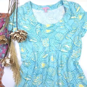 Lilly Pullitzer Blue Patterned Women's Soft T-shirt Dress Sz L