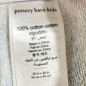 Lilly Pultizer for pottery barn hooded swim beach towel coverup in a blue and white abstract pattern. Made of 100% cotton. Euc