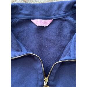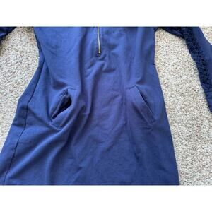 Lilly Pultizer Womens Long sleeved, Cover up, pull over dress. size Medium. Thumb holes; Navy Blue with crochet design down arms. Very Cute!