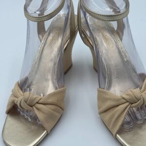 Lilly Pultzer Emmie Wedge Sandals, Natural/Gold, open-toe ankle strap Size 8.5.