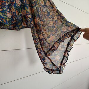 Lilly Star Blue Floral Boho Hippie Bell Sleeve Festival Cropped Top Size Small