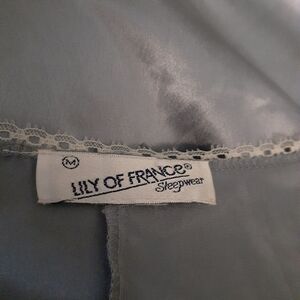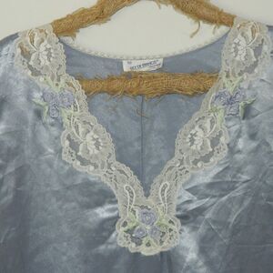 Lilly of France Sleepwear Blue Satin Short Gown Lingerie Lace Short Sze Medium