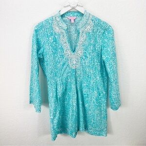 Lilly pulitzer sarasota beaded tunic shorely blue ice cake small S