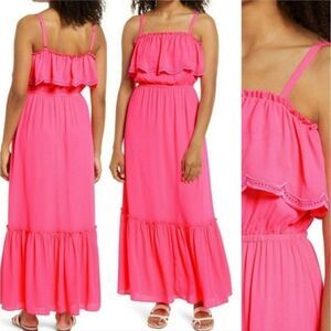 Lilly Pulitzer Aria Ruffle Maxi Dress, Nwot, Size XS, Color is Love Potion (Hot Pink). Fully lined in matching color. Measurements are