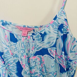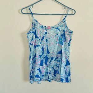 Lilly Pulitzer Bay Blue Into the Deep Coral Tank Top SIZE SMALL
