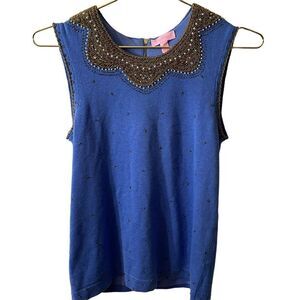 Lilly Pulitzer Beaded Wool Kate Sweater Tank in Blue Bell Size Small