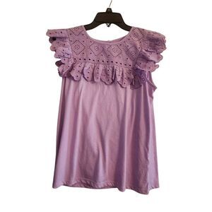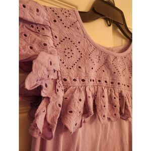 Eyelet ruffle, label covered to avoid returns as purchased in a bulk new order