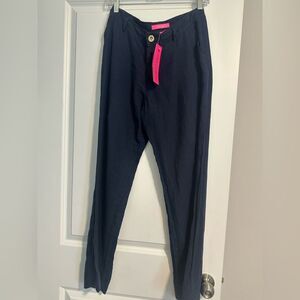 Lilly Pulitzer Breeta Linen Trousers True Navy Size 2 NWT