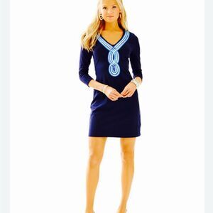 Lilly Pulitzer Clarkson True Navy Dress French Terry with White Accents SZ M