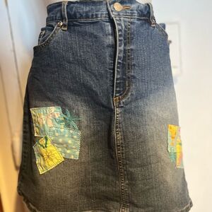 Lilly Pulitzer Denim Skirt Embroidered Patches logo jean dress bottoms cute rare