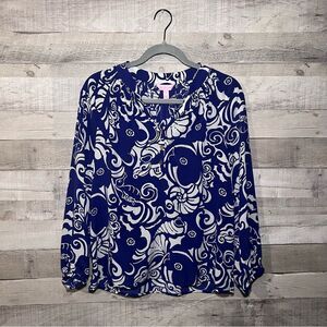 Lilly Pulitzer Elsa Silk Blue Tide Pools Pullover Blouse