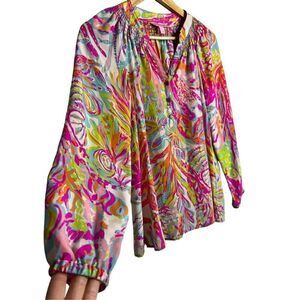 Lilly Pulitzer Elsa Silk Top Womens Resort White Scuba to Cuba Long Sleeve Sz XS