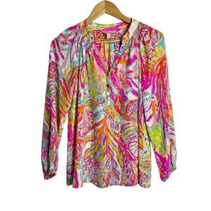 Lilly Pulitzer Elsa Silk barbiecore Scuba to Cuba Long Sleeve Sz XS
