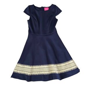 Lilly Pulitzer, Modern, Straight, Fabric, Polyester Blend, Cap Sleeve, Lace Trim, Back Zip, Party/Wedding, Fall, Summer, Spring, Lilly Pulitzer Fit & Flare Klara Dress Women's 10 Blue Exposed Zip Party Stretch.