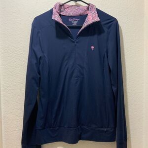Lilly Pulitzer Frances luxetic 1/4 zip True Navy Twirly pullover size Large