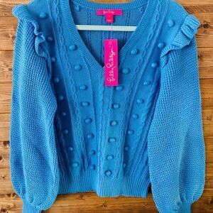 New with tags, adorable sky blue sweater in the Gretna style and Blue Thistle color way from Lilly Pulitzer.