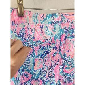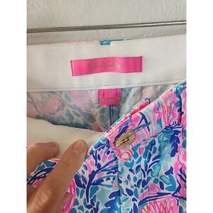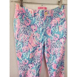 Lilly Pulitzer Pink Blue Seashells Pants Blue Pink Women's Size 2 Cotton Stretch