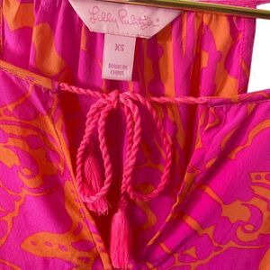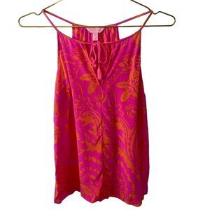 Lilly Pulitzer Pink Finn Silk Halter Pop Orange Tassel Tank Top/Cami Size XS
