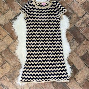 [Lilly Pulitzer] Santana Wool Chevron Sweater Dress in blue & gold - Size Medium
