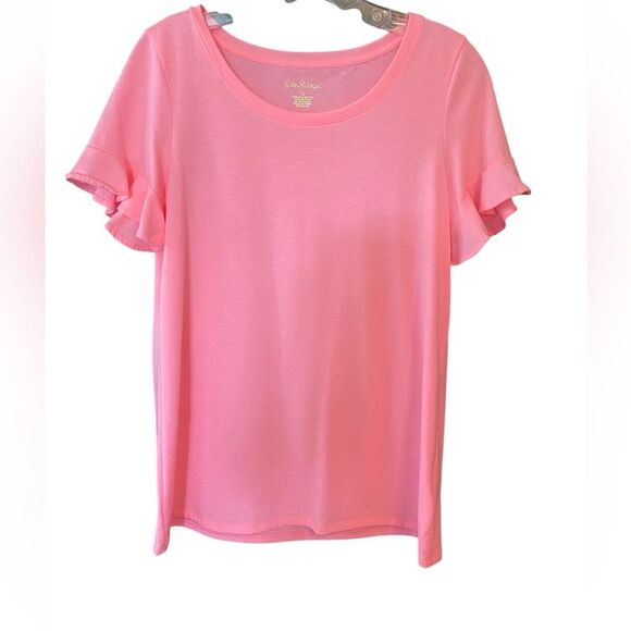 Lilly Pulitzer Sz S Light Pink Short Sleeve Flutter Sleeves Cotton T-Shirt