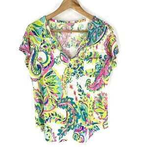Lilly Pulitzer T Shirt Size Small Pink Green Knit Linen Casual Top Print Beachy