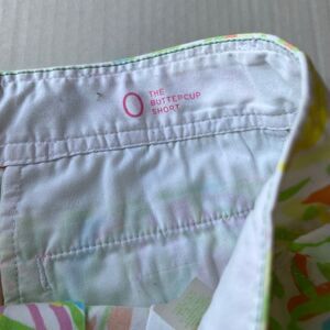 Lilly Pulitzer The Buttercup Short vibrant, multicolored women's shorts in a tropical design, perfect for warm weather. Featuring scalloped hem and various floral patterns, these shorts offer both style and comfort. They are in excellent, like-new condition with clean interiors. Ideal for adding a splash of color to your summer wardrobe!