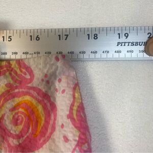 Lilly Pulitzer Tiered Scalloped Edge Conched Out Mini Skirt Size 12. Excellent pre-owned condition. Back hook and zipper closure. Seersucker. Pink, lime, orange and yellow conch seashells. White lining. 100% cotton machine washable. Measures approximately waist 34", length 13".