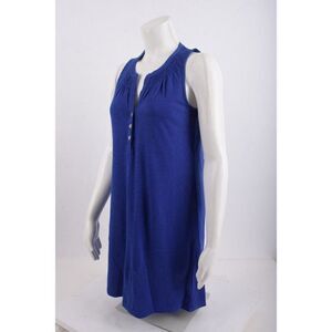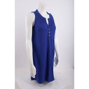 Lilly Pulitzer Womens Essie Dress Shift XS Twilight Blue Sleeveless Cotton Relaxed fit sleeveless dress, featuring v-neckline with pleats and Henley placket.