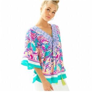 Lilly Pulitzer Women’s Letti Silk Caftan in Safari Sighted Silk Tunic Length Blouse
