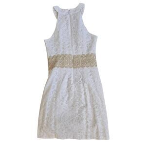 Lilly Pulitzer Women's Sleeveless Floral Lace Mini Dress White Gold Trim Size 00